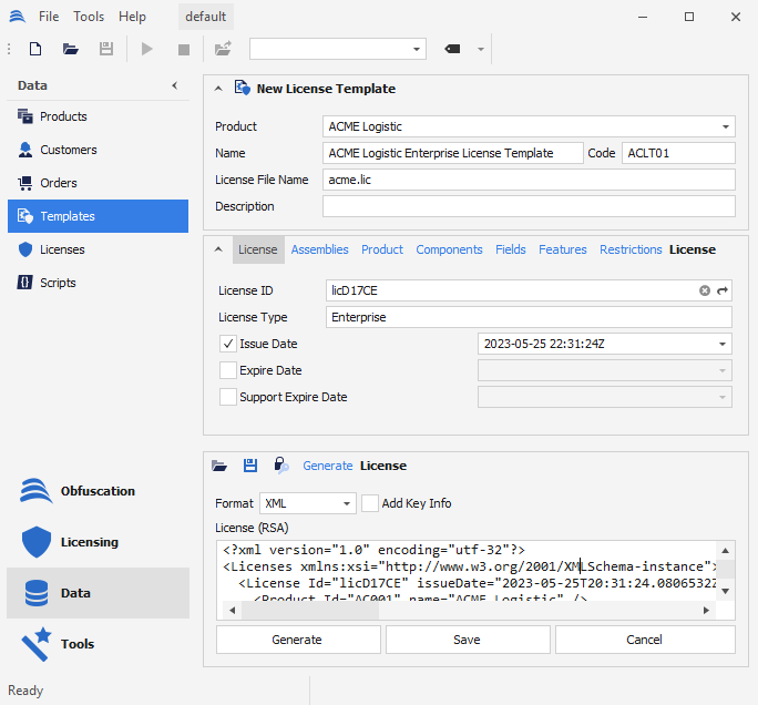 - Streamlined License Generation: With license templates, generating licenses becomes a streamlined process. Templates pre-fill the relevant information, such as product details, license fields, features, and restrictions. This eliminates the need to manually enter repetitive information and speeds up the license generation process.