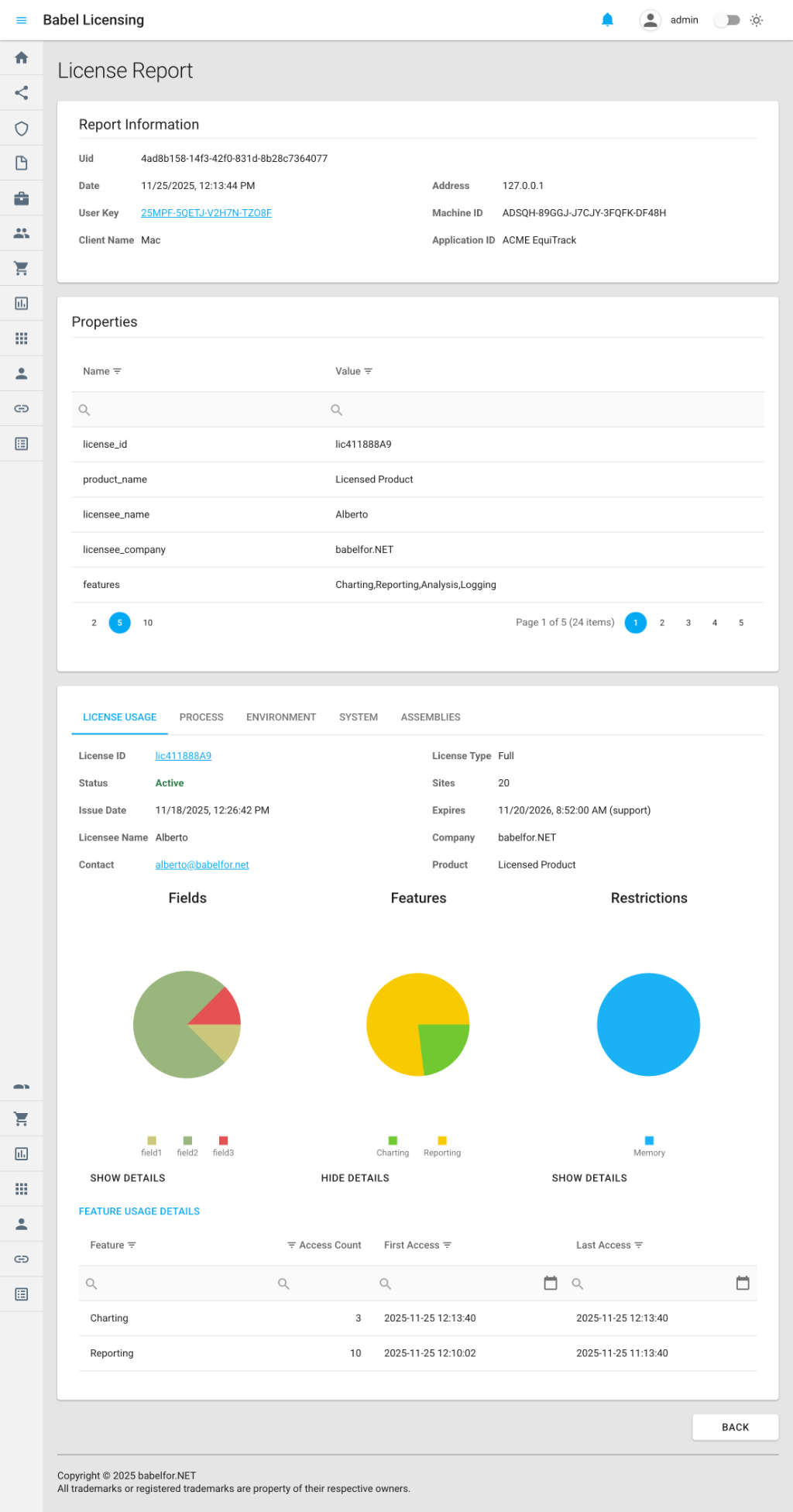 While the web interface provides comprehensive viewing capabilities, you can also access report data programmatically through the Babel Licensing Service API for: