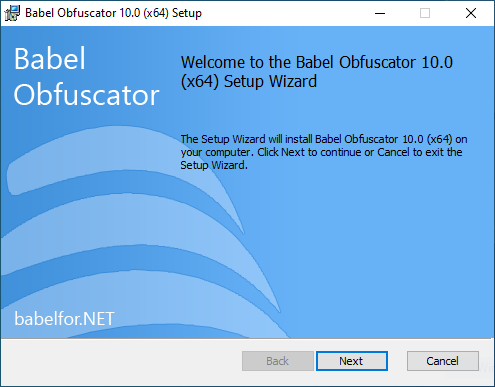 To install Babel Obfuscator, launch the babel setup MSI installer. This package will guide you through the installation process.